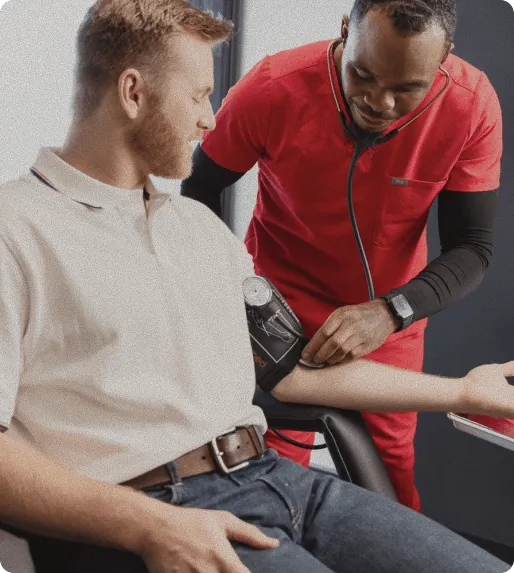 Healthcare professional drawing blood from a patient in a Gameday clinic, showing a safe and simple way to access lab tests for personalized men’s health care.